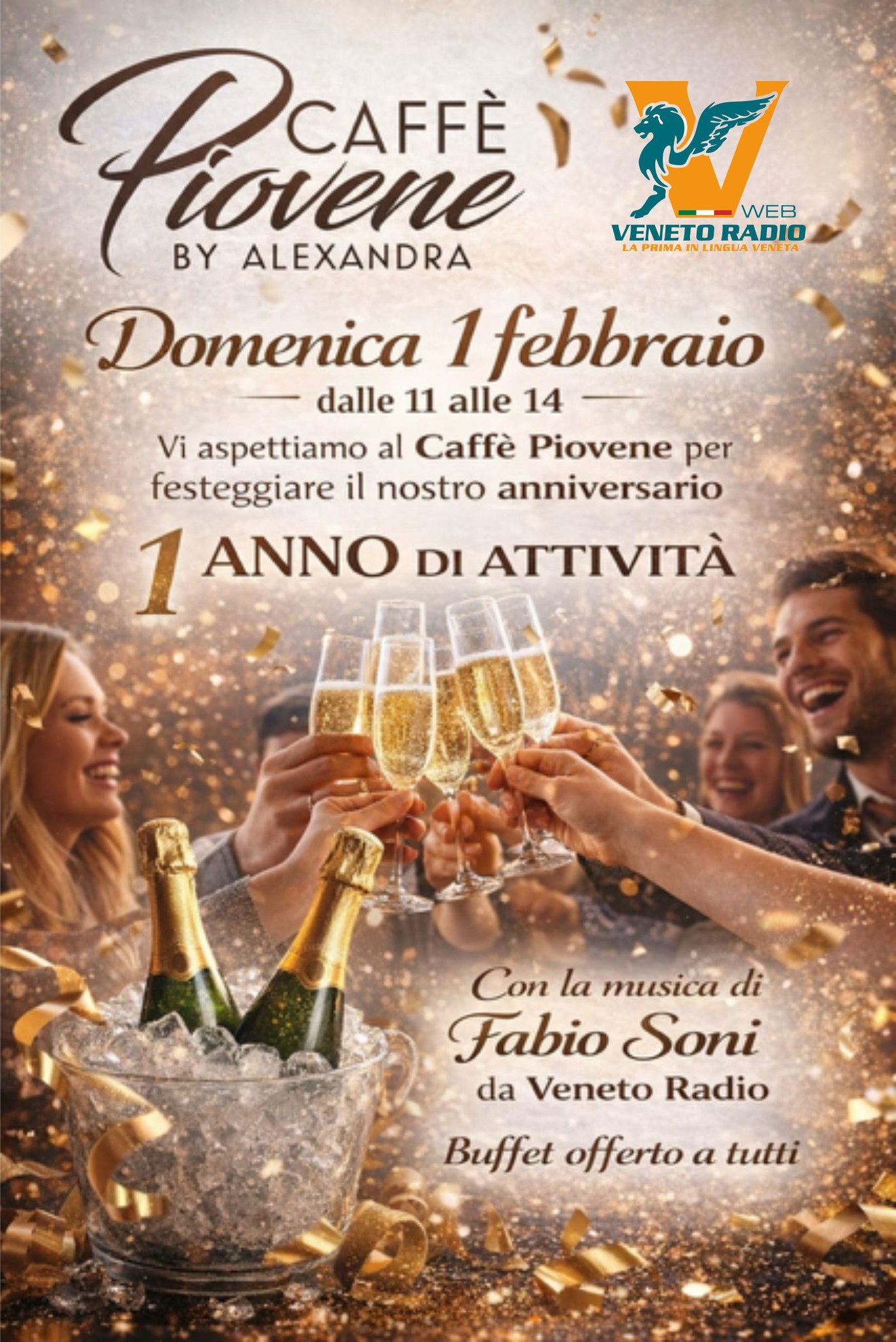Vi aspettiamo al Caffè Piovene by Alexandra domenica 1 febbraio dalle 11 alle 14 per spegnere assieme la nostra prima candelina per tutti ricco Buffet offerto in compagnia di Veneto Radio Dj Fabio Soni